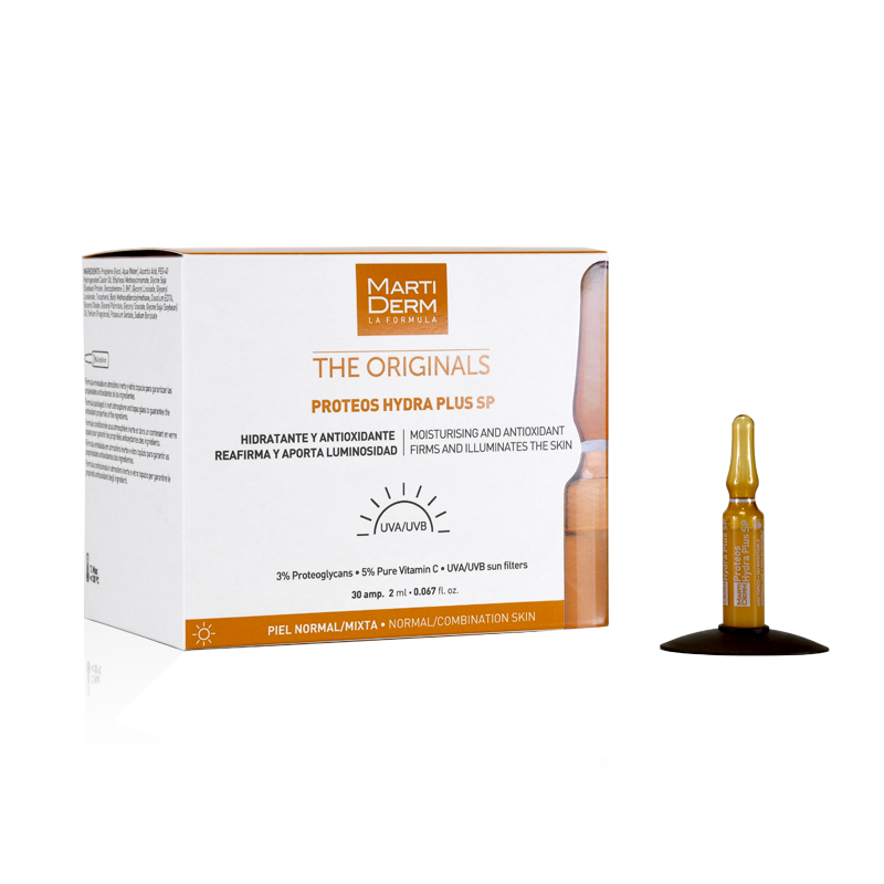 Las ampollas Proteos Hydra Plus SP, con factor de protección solar, actúan desde la primera aplicación hidratando y aportando luminosidad y tersura a la piel. Además, su uso diario previene y corrige las arrugas, y aumenta la firmeza de la piel.