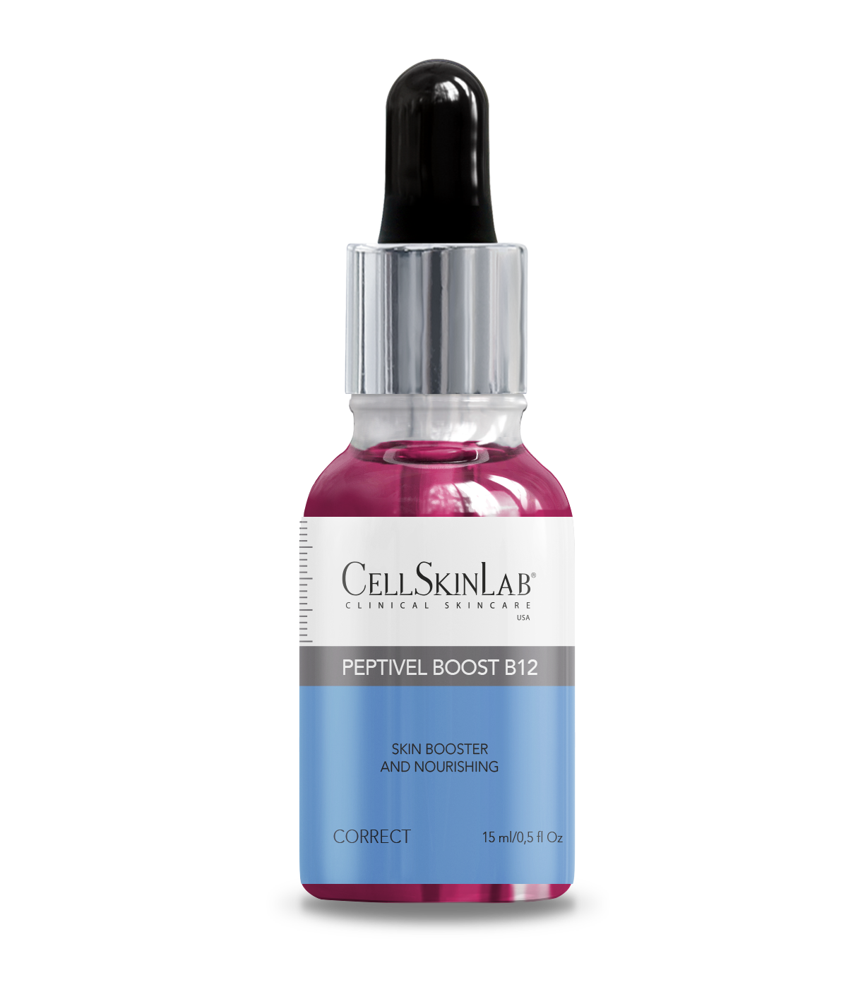 Aplica 4 a 5 gotas de PEPTIVEL BOOST B12 en rostro, cuello y escote (excepto parpados) con movimientos semicirculares y ascendentes, sobre la piel limpia y seca en la mañana o en la noche.