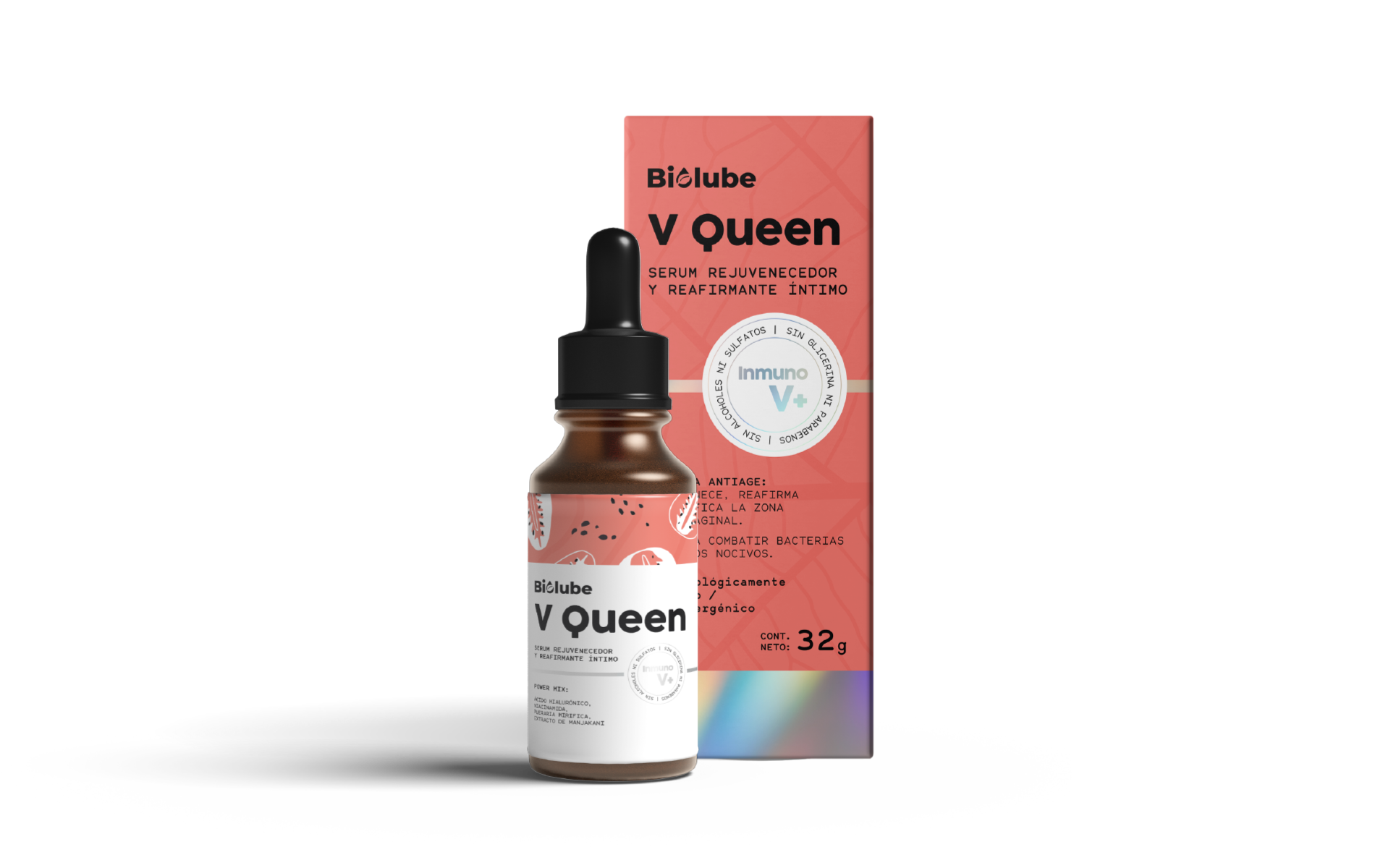 Es una formulación biotecnológica de tipo serum de textura ligera que ayuda a regenerar la barrera protectora. Se encuentra enriquecida con ácido hialurónico y componentes de la medicina tradicional china y ayurvédica. V Queen ayuda a recuperar la integridad y salud de la mucosa vulvovaginal y piel proporcionando potente hidratación, firmeza y mayor elasticidad.