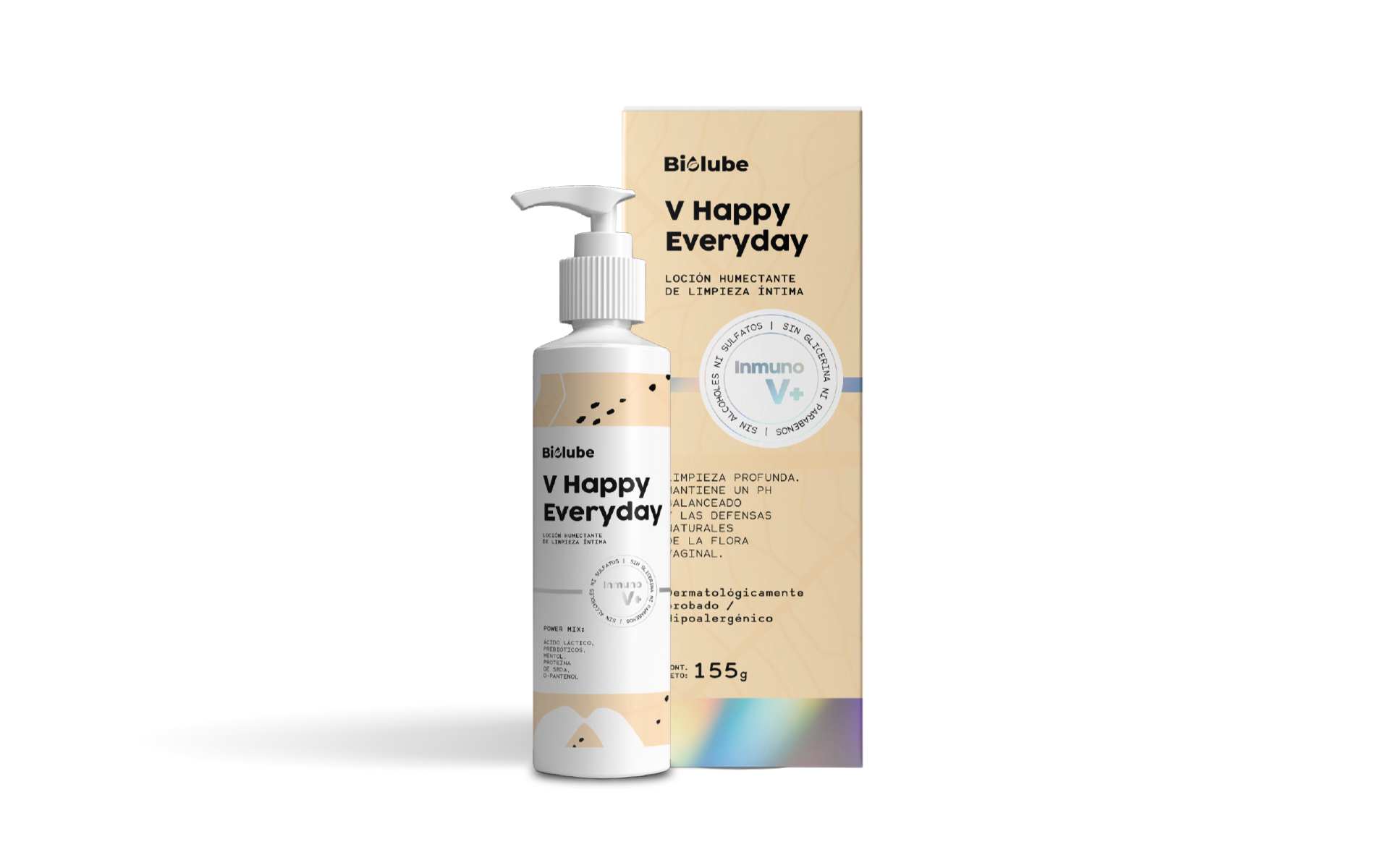 Aplicar diariamente durante la ducha una cantidad de producto a gusto y esparcir masajeando suavemente por toda la vulva (genitales externos femeninos: monte de venus, labios externos e internos, clítoris, pliegues, zona perineal e introito). Luego enjuagar con abundante agua de adelante hacia atrás. Biolube V Happy Everyday respeta la acidez natural de la zona. Por ser suave, hipoalergénico y no contener jabón, es seguro y apto para el uso diario.