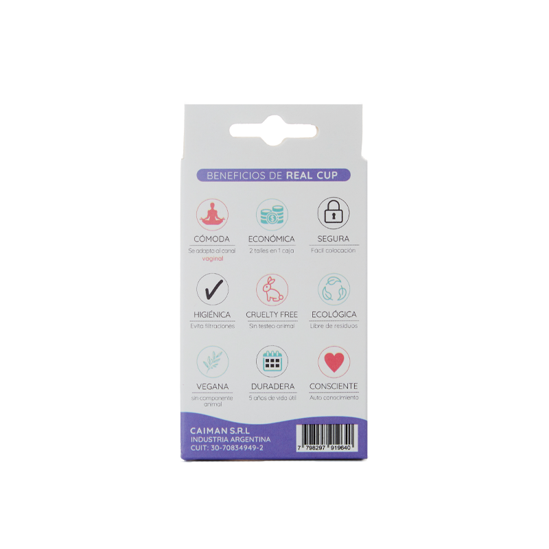 La copa menstrual real cup está hecha con un material hipoalergénico conocido como TPE y fue sometida a ensayos en distintos organismos que garantizan su calidad.