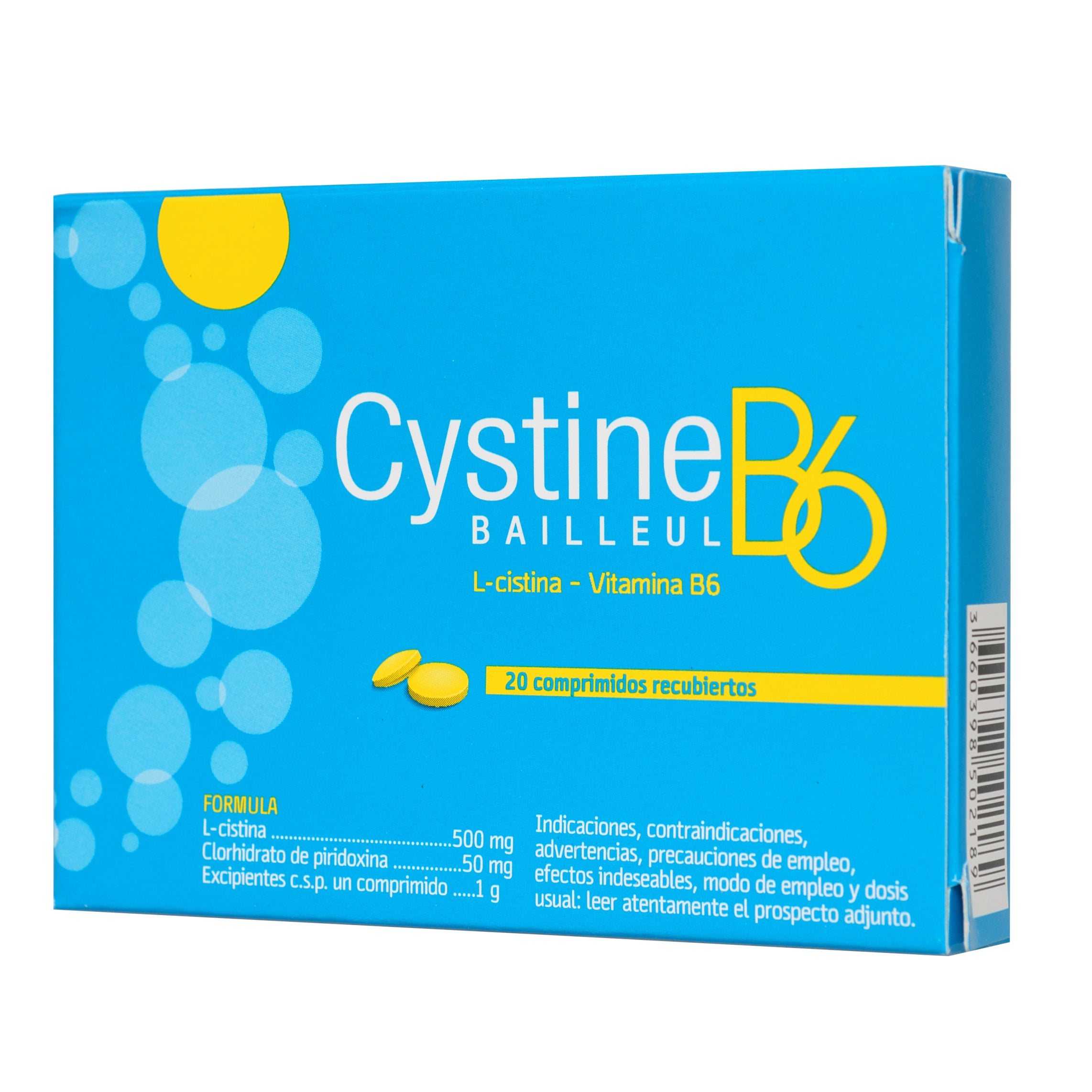L-Cistina 500 mg.; Clorhidrato de piridoxina 50 mg,; Excipientes c.s.p. un comprimido recubierto.