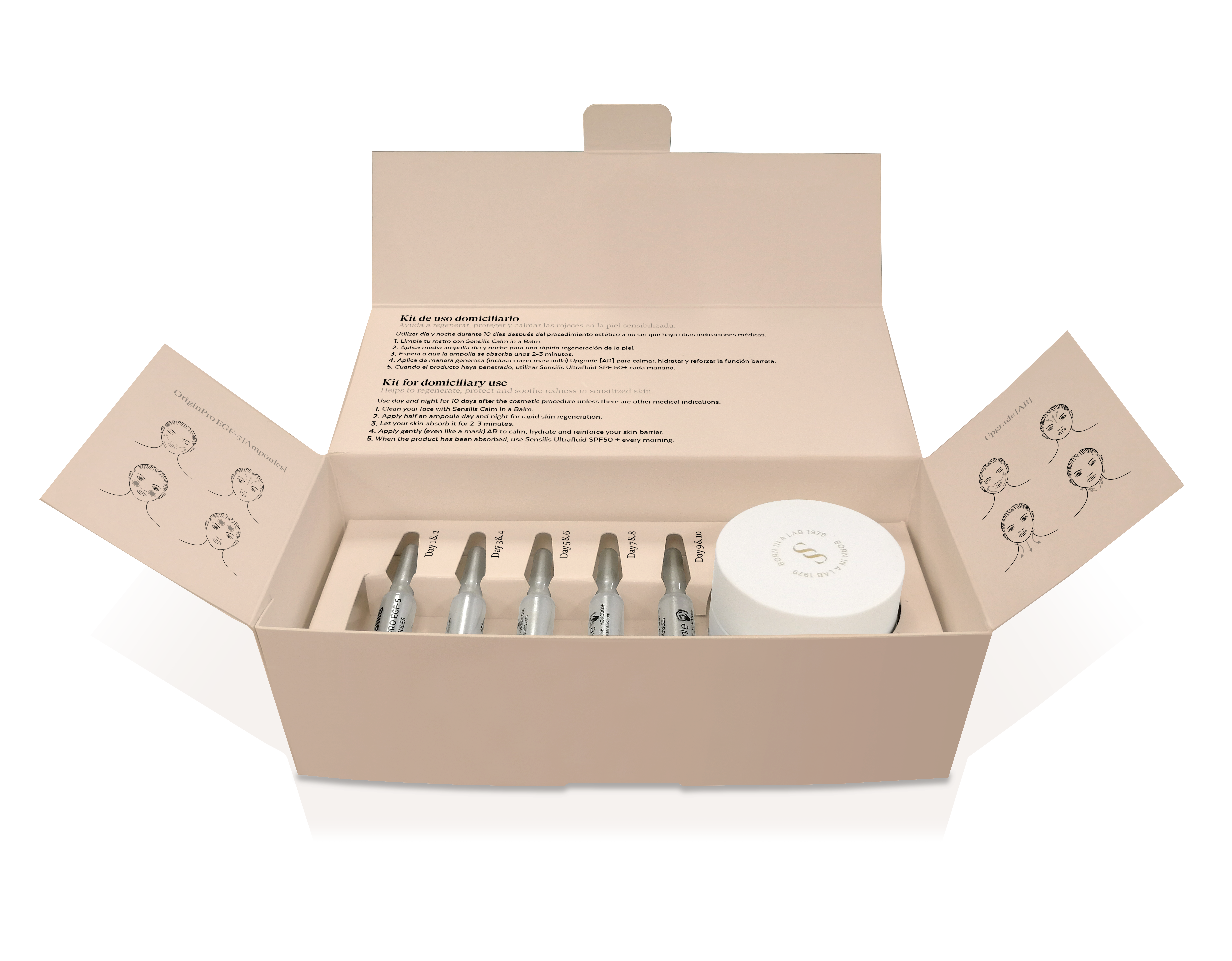 Kit de uso domicilario que reduce rojeces y disminuye el tiempo de recuperación de procedimientos estéticos.