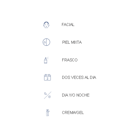 Hidratación para el cuidado diario, en forma de crema gel, que ayuda a regular la grasa y a eliminar impurezas en pieles mixtas.