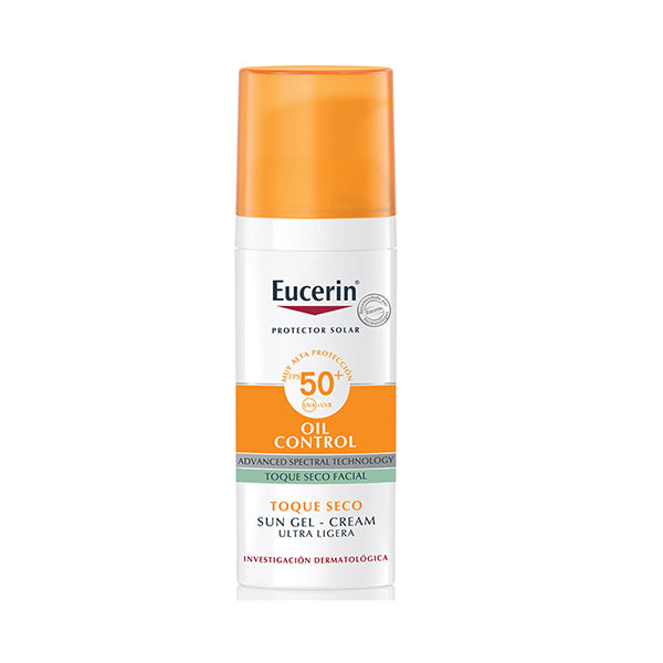 Eucerin Sun Gel-Crema Oil Control Toque Seco FPS 50 es un protector solar para el rostro con FPS alto de uso diario, formulado para las necesidades específicas de la piel grasa y propensa al acné. Su fórmula proporciona protección de nivel superior contra los daños de la piel inducidos por el sol y contiene una solución activa para mejorar el estado de la piel.
