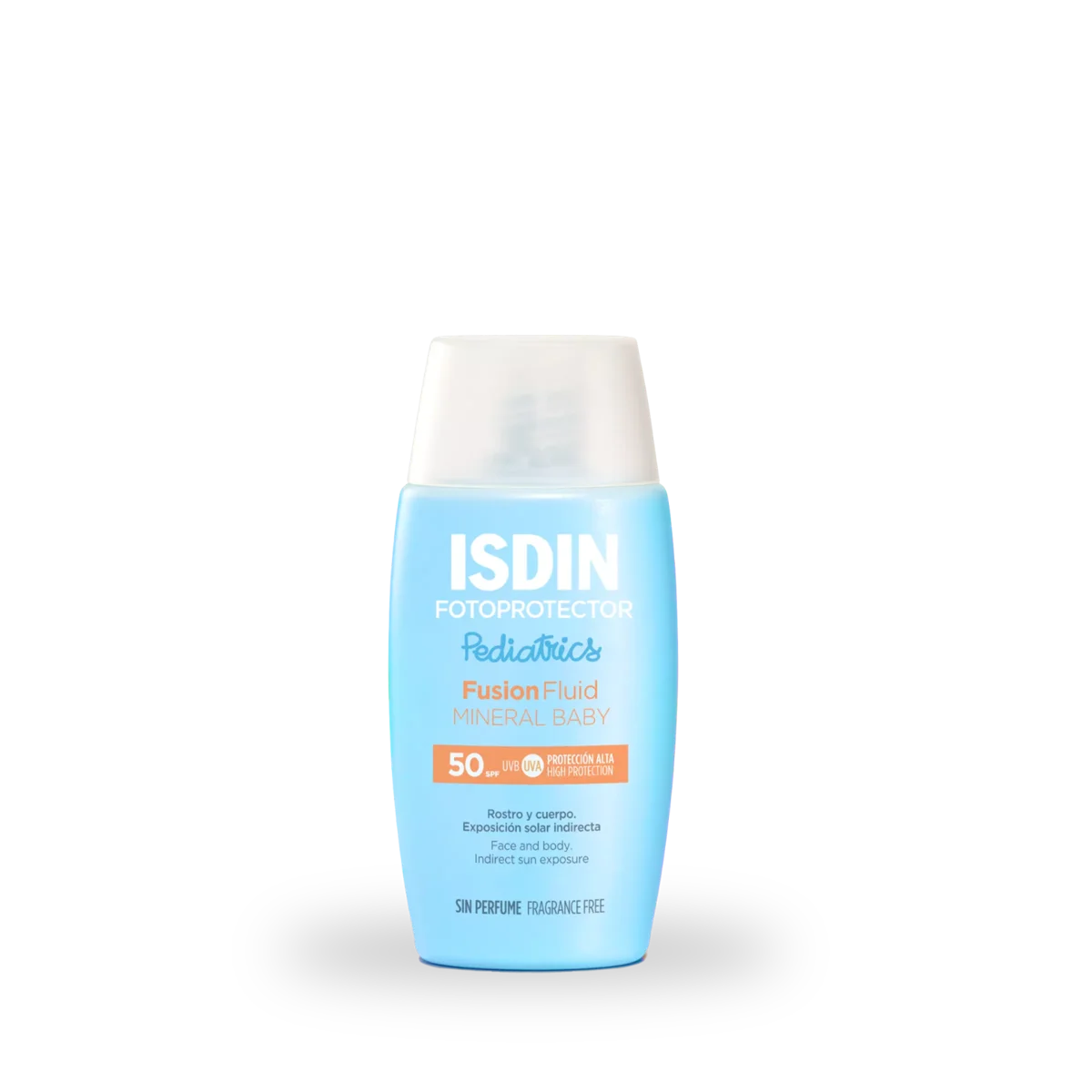 Protege la piel de niños y bebés con Fusion Fluid Mineral Baby Pediatrics SPF 50, el fotoprotector fluido para rostro y cuerpo con filtros 100% minerales. Está especialmente formulado para la piel frágil de los más pequeños.