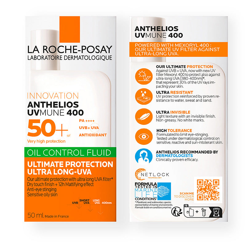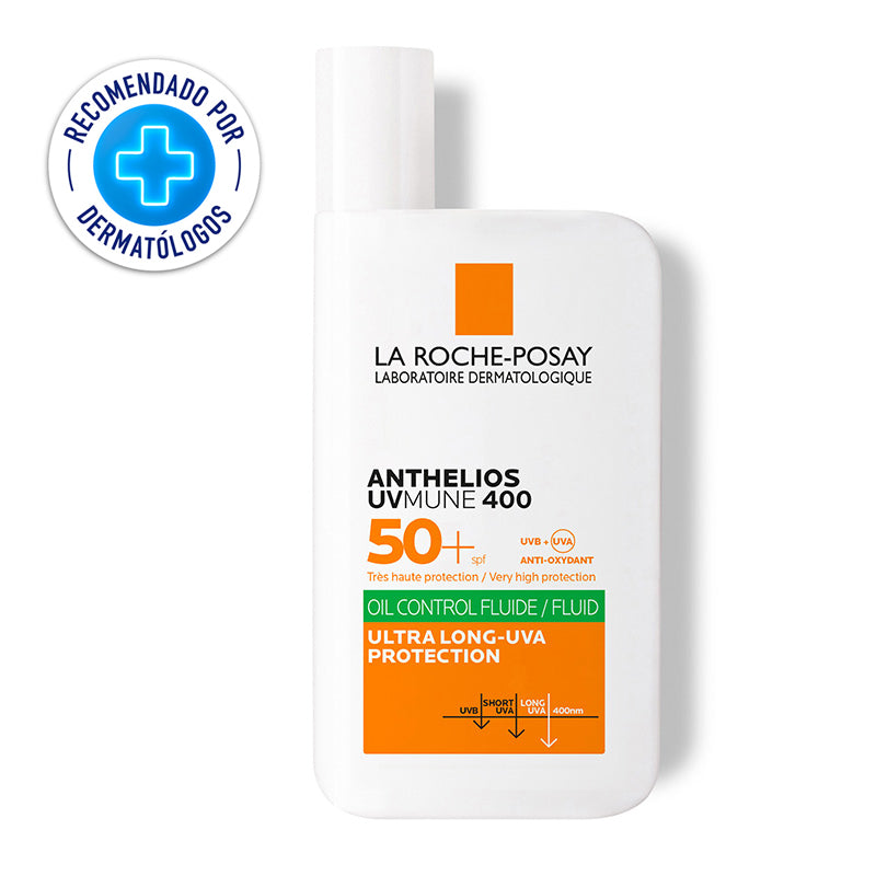 Anthelios UVMune 400 Oil control SPF50+ 50ml es indicado para pieles grasas, incluidas las pieles con tendencia a las imperfecciones, sensibles e intolerantes al sol. Formulada con nuestro revolucionario filtro UV UVMune 400, el filtro UV más eficiente para la protección contra los rayos UVA, nuestra fórmula liviana e invisible protege contra los rayos UVA y UVB y se funde con la piel para una protección sin marcas blancas