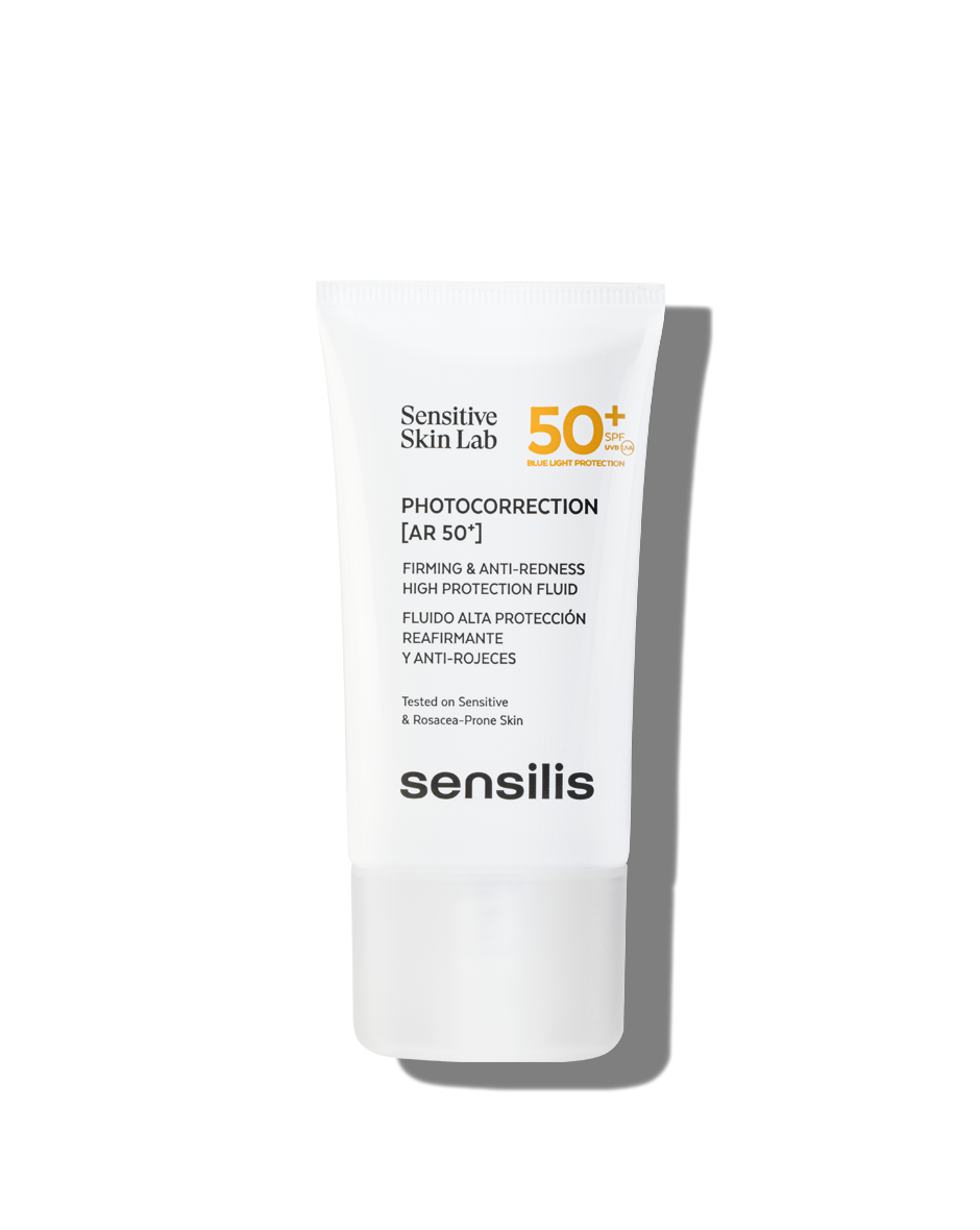 Photocorrection [AR 50+] es para pieles sensibles, con tendencia a rosácea y/o cuperosis que siguen una rutina antirojeces y reafirmante y que buscan un fotoprotector diario hidratante y calmante.