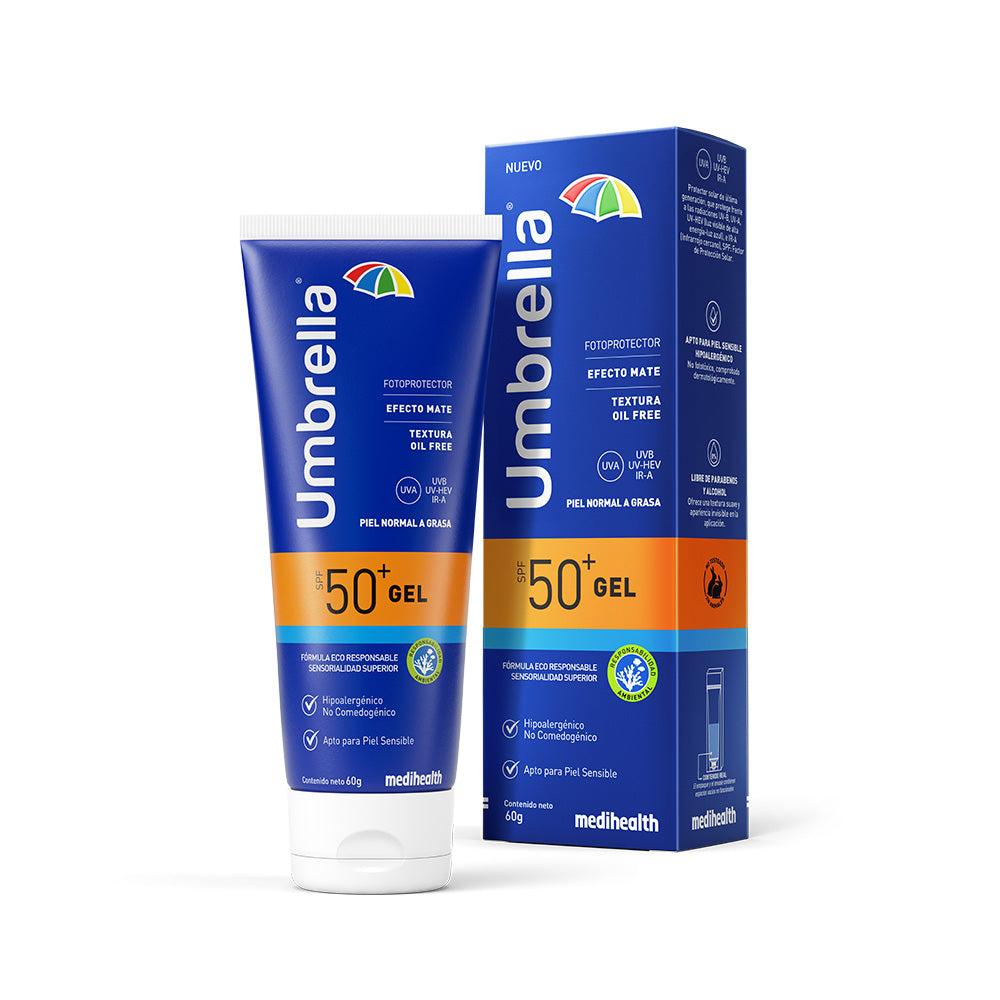 Umbrella Gel es una exclusiva fórmula que une tres modernos filtros solares y óxido de zinc como pantalla solar.