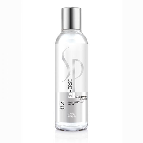 El Shampoo de Sp Reverse Limpia y restaura suavemente el cabello apagado y sin vida con el champú Wella SP Reverse.