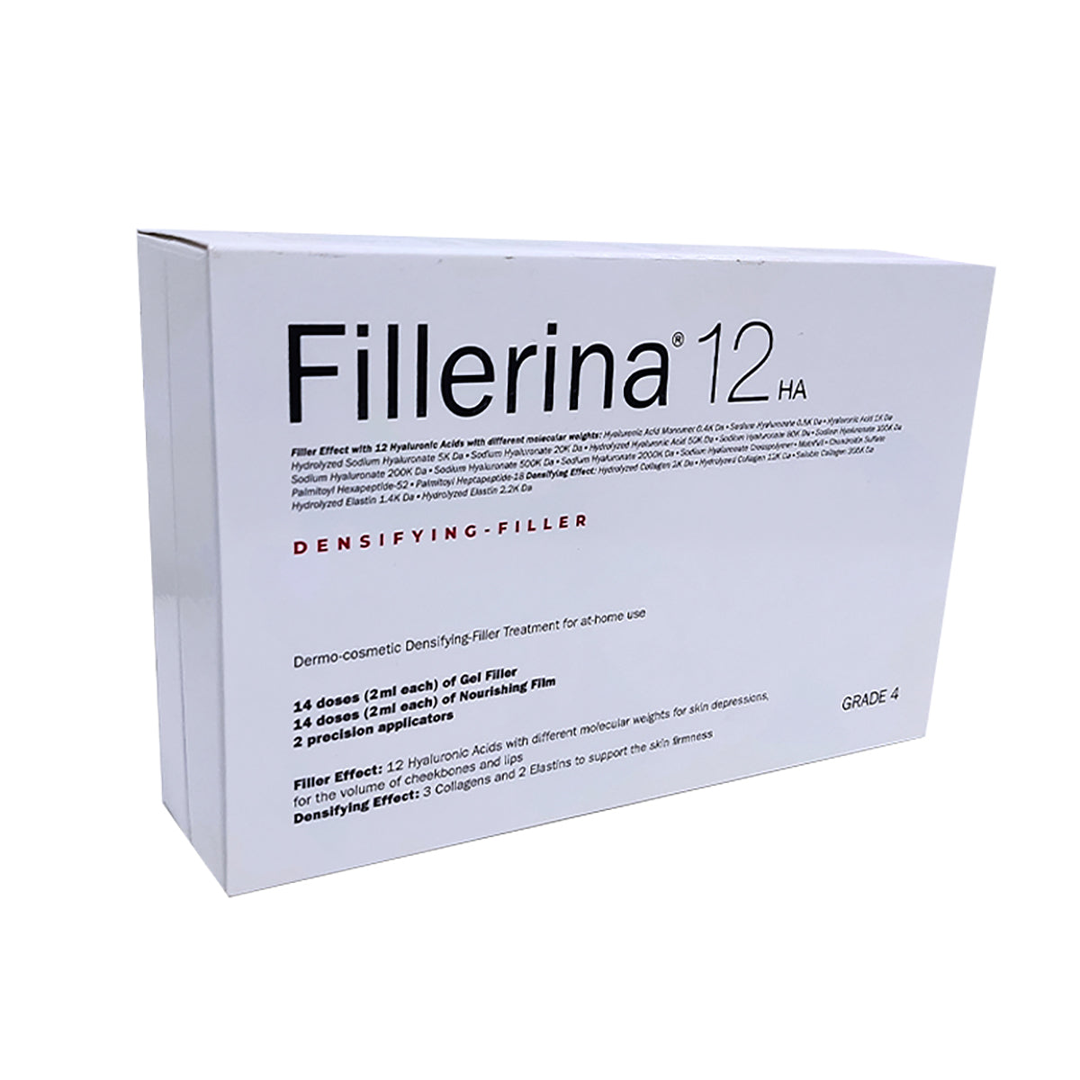 Fillerina es el primer tratamiento dermocosmestica de relleno para uso en casa y para uso externo exclusivamente. Gracias a la acción de Ácido Hialurónico especiales con diferentes pesos moleculares proporciona un nivel diferente de relleno en: líneas de expresión, arrugas por envejecimiento, microrelieves y áreas de la cara que sufren flacidez (pómulos, contornos de la cara, superficie de los labios).